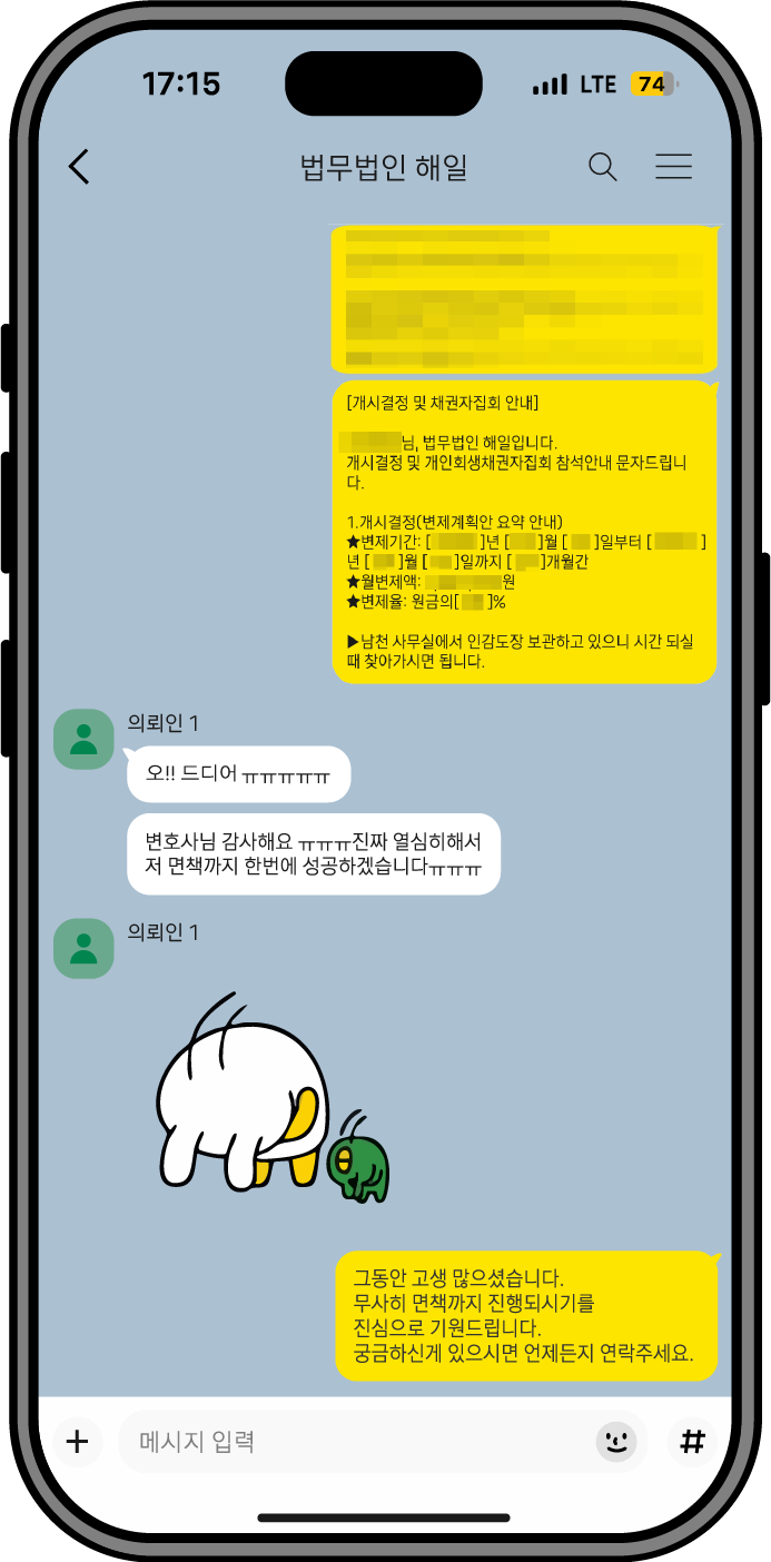 회생 과정 전반에서 느끼신 변화와 만족도를 생생한 경험담으로 전달드립니다.